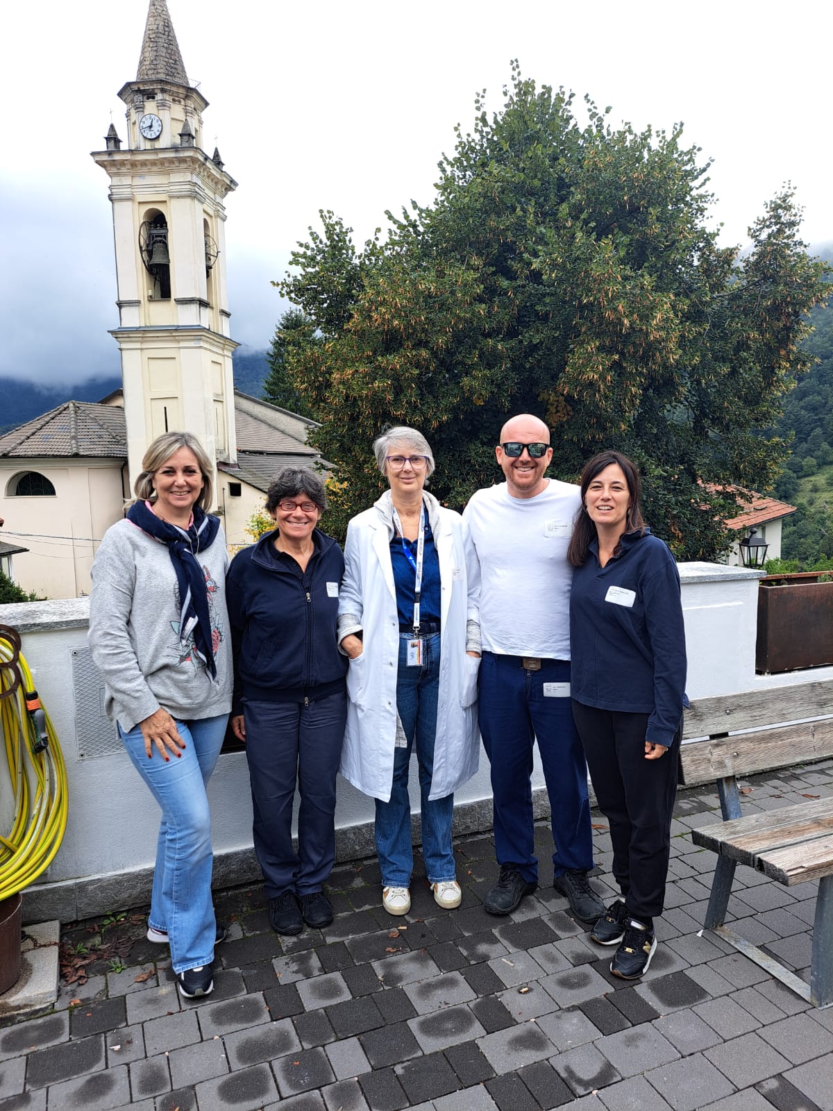 Foto 2: mercoledì 16 luglio a Fontanigorda - Nella foto da sinistra Matteo Floridia, Infermiere di Famiglia e Comunità Asl3; Emilia Tasso, Referente delle Attività Fisioterapisti Cure domiciliari - Rsa - Disabili Asl3; Laura Ursi, Infermiere di Famiglia e Comunità Asl3; Maria Nives Parodi, geriatra Asl3; Gloria Ceccarini, Fisioterapista Asl3