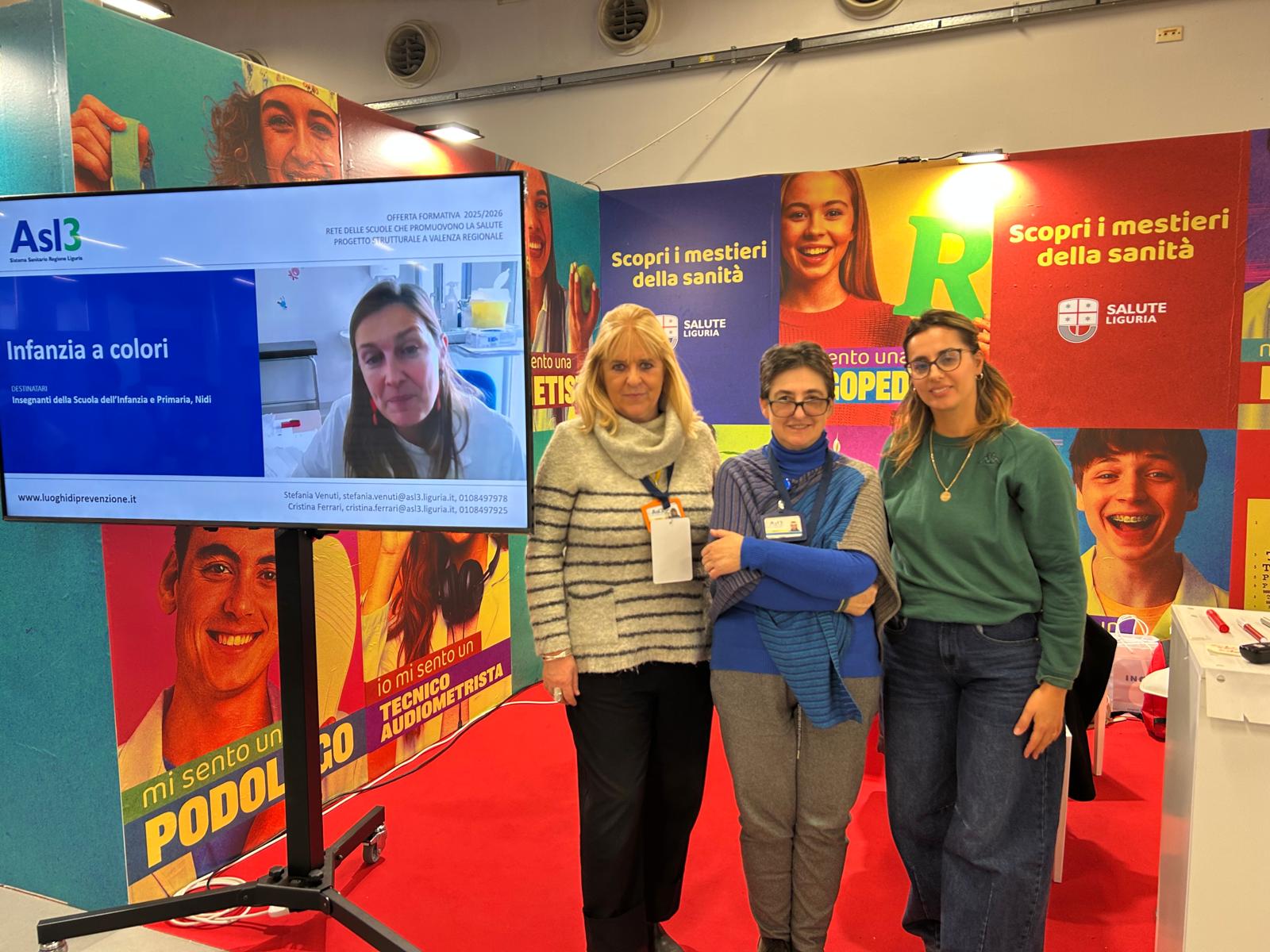 Gli specialisti Asl3 saranno presenti allo stand dedicato di Regione Liguria martedì 18 novembre dalle 9 alle 14 per fornire informazioni a giovani, insegnanti e genitori su servizi e progetti di prevenzione e promozione della salute Asl3. Sempre nella giornata di martedì 18 novembre dalle 9.30 alle 10.30 nella sala Aliseo incontro per insegnanti e genitori a cura degli specialisti del Dipartimento corretti stili di vita Asl3.