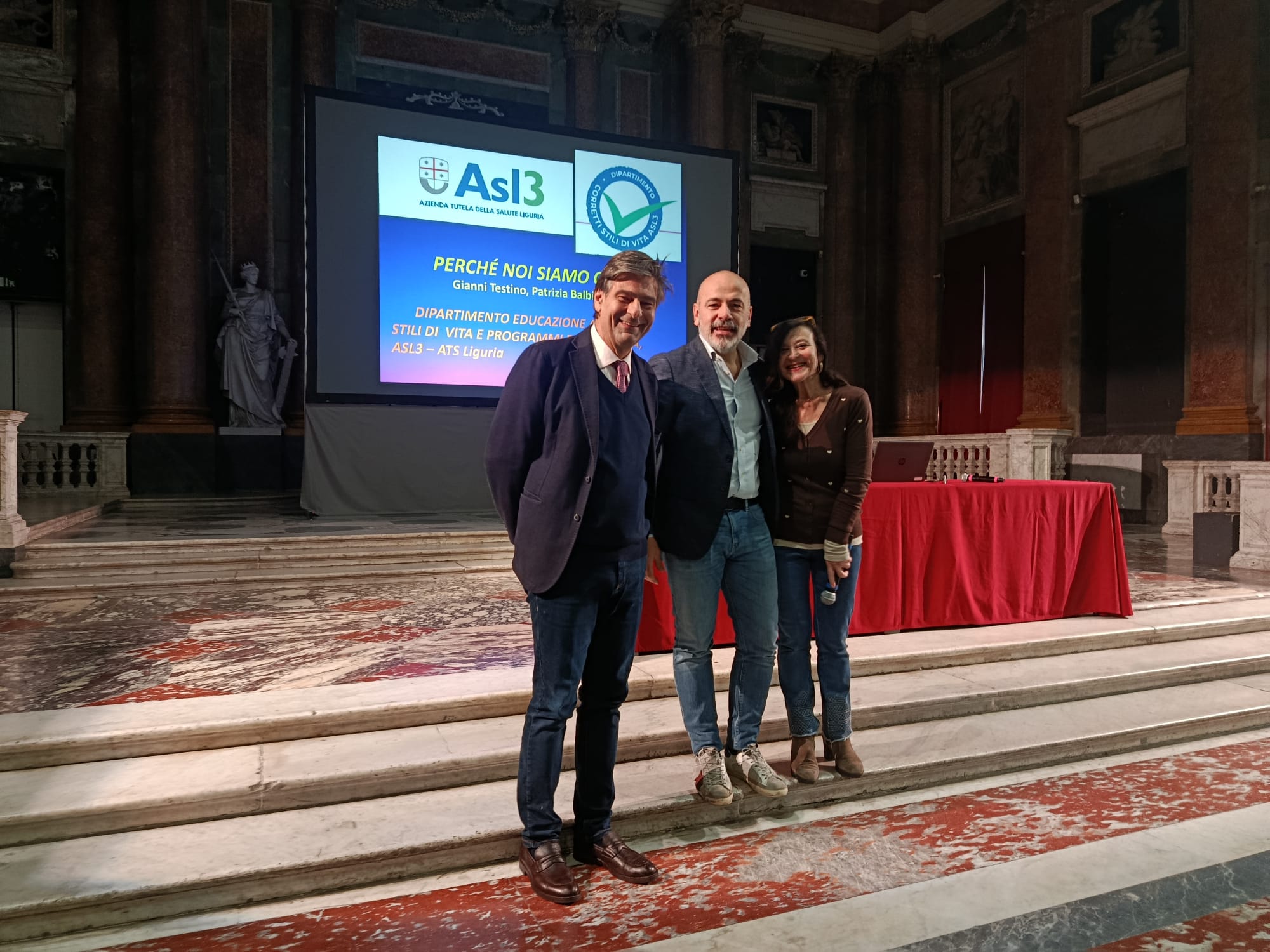 Foto 2: Giovedì 29 gennaio - Educazione a corretti stili di vita - Relatori: Dott. Gianni Testino, Direttore Dipartimento Funzionale Educazione a Corretti Stili di Vita e Programmi di Comunità Asl3 insieme a Massimo Nicolò, Assessore alla Sanità Regione Liguria