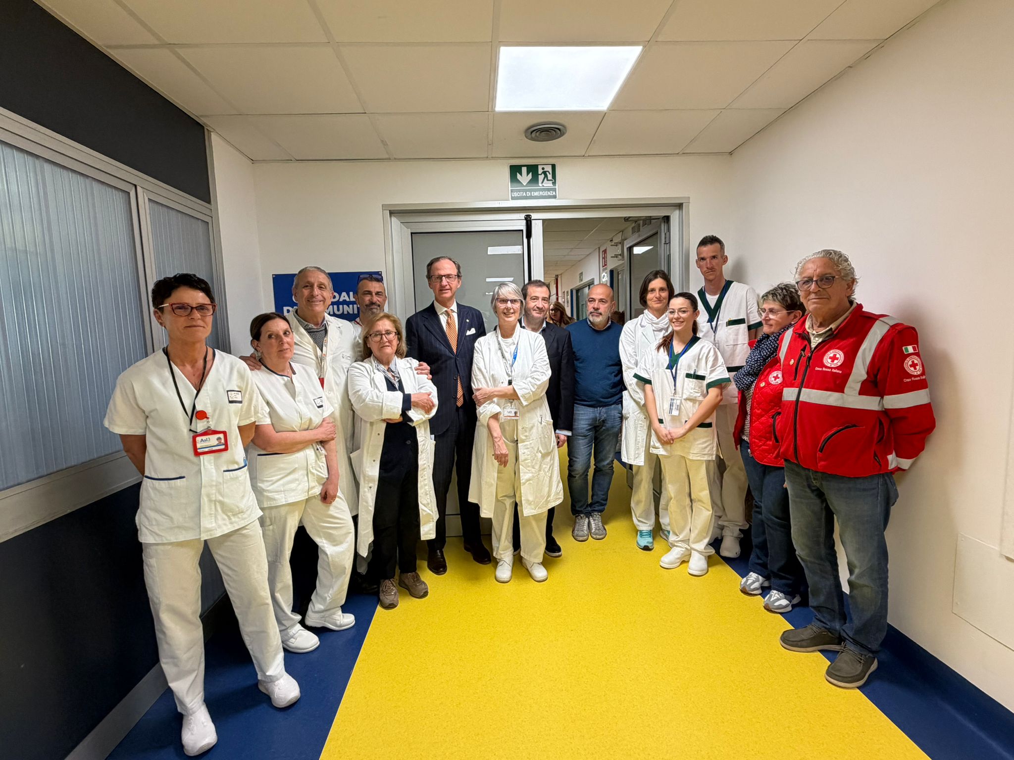 Foto 1: L'Assessore alla Sanità della Regione Liguria Massimo Nicolò insieme all'équipe dell'Ospedale di Comunità "La Colletta"